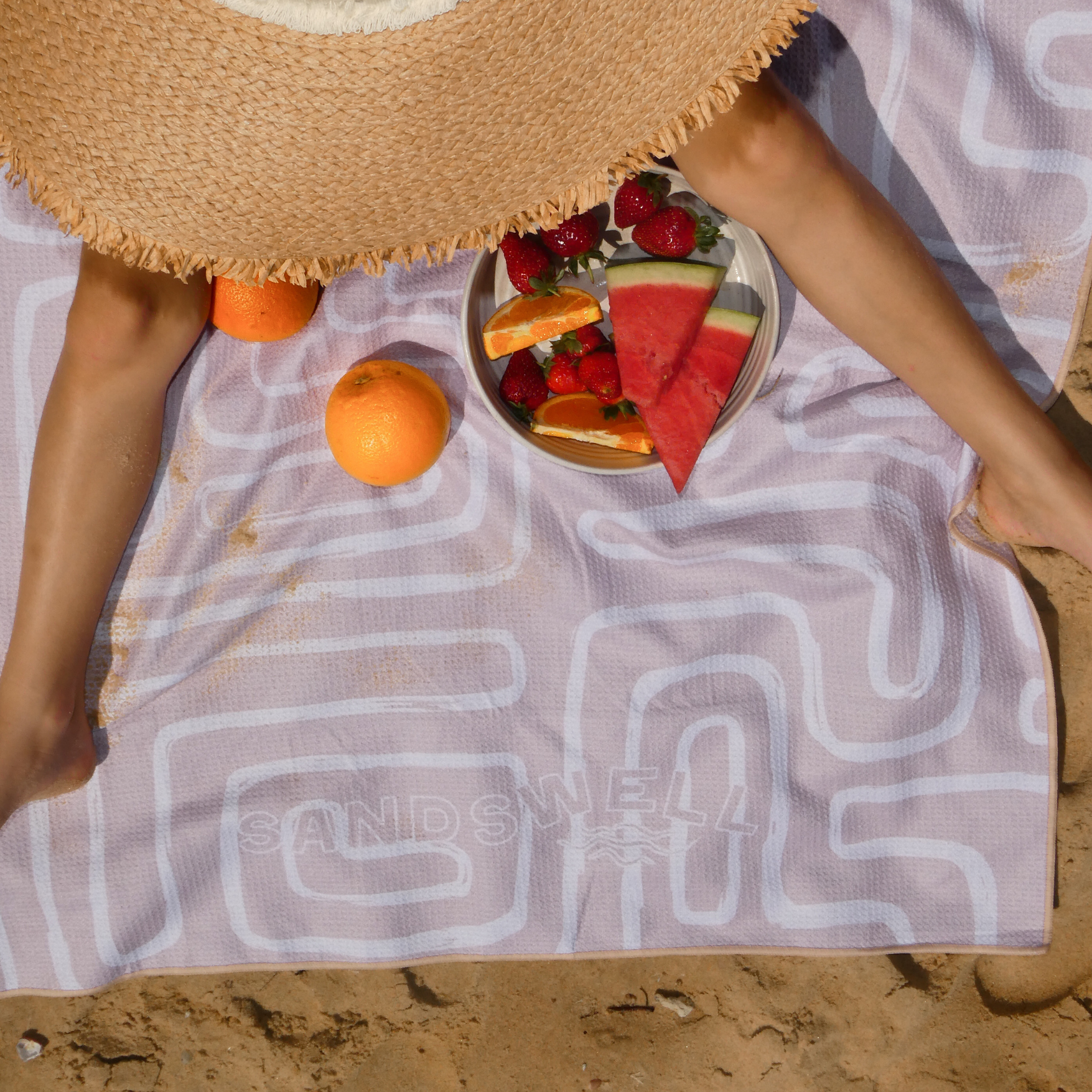 A sand-free beach towel is designed with a special woven fabric that allows sand to fall through instead of sticking to the surface. Sandswell towels repel sand with a simple shake, helping keep your beach bag, car and home cleaner.