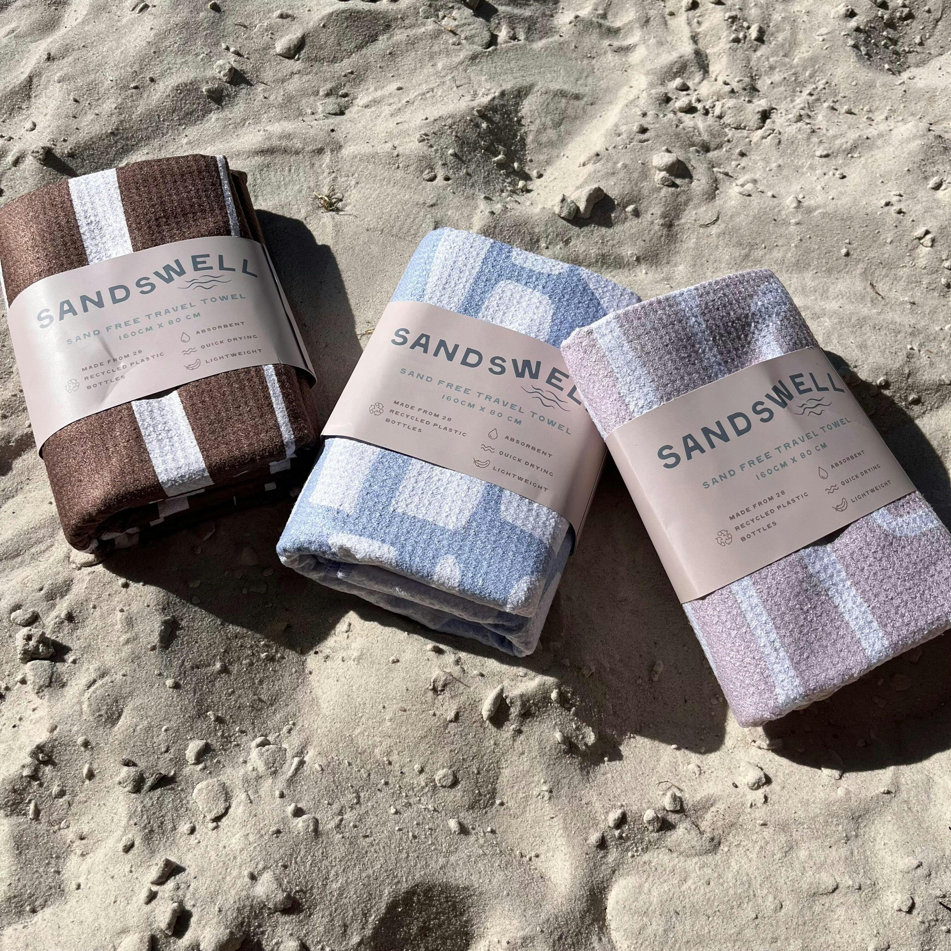 A sand-free beach towel is designed with a special woven fabric that allows sand to fall through instead of sticking to the surface. Sandswell towels repel sand with a simple shake, helping keep your beach bag, car and home cleaner.